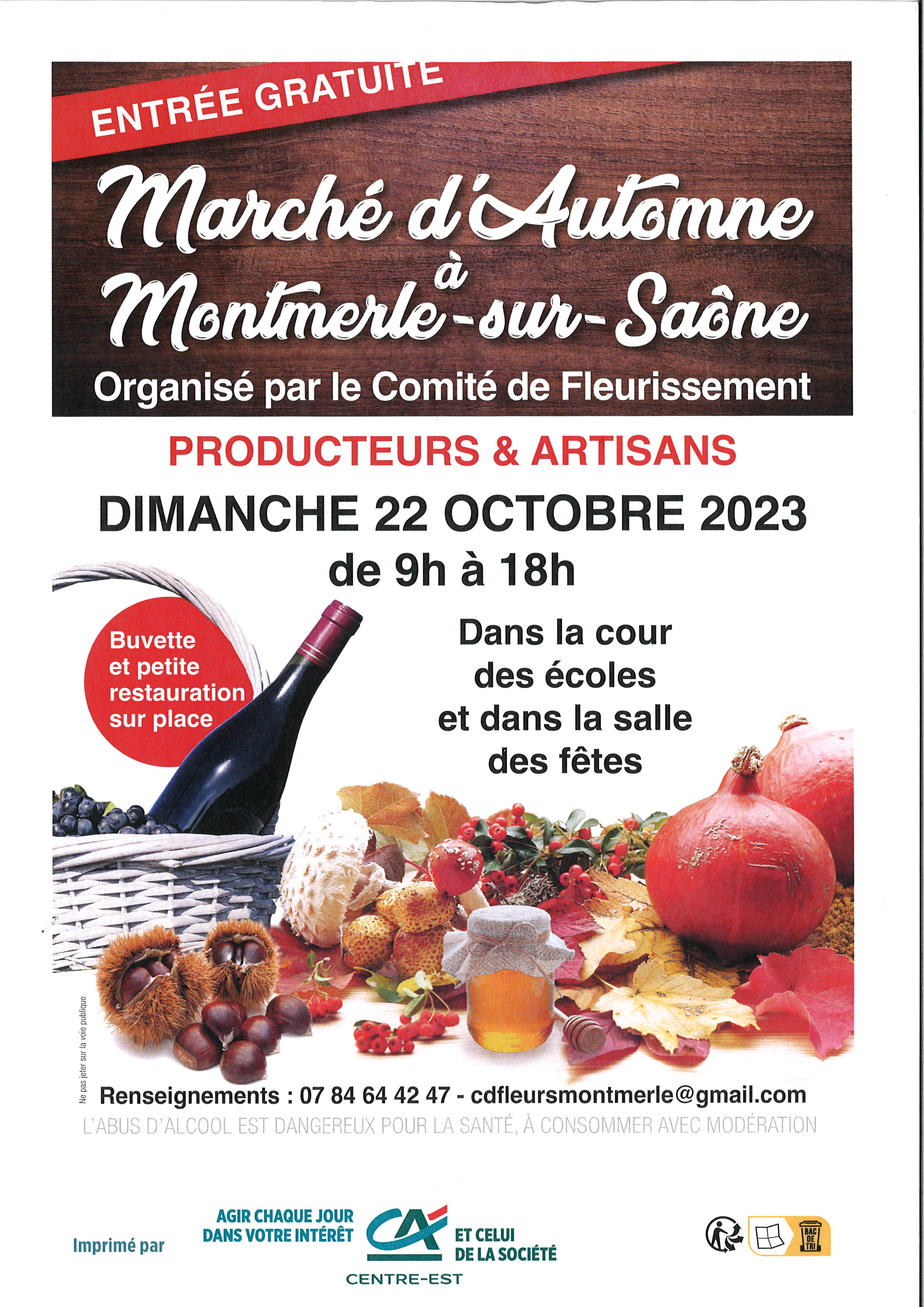 Venez nous rendre visite au marché d'automne le 22 octobre 2023 à la salle des fêtes de Montmerle-sur-Saone (01090).