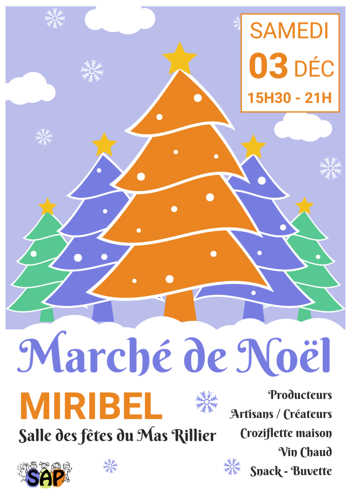 Venez nous rendre visite au 🎄 marché de Noël 🎄 le 03 décembre 2023 à la salle des fêtes du Mas Rillier (01700).